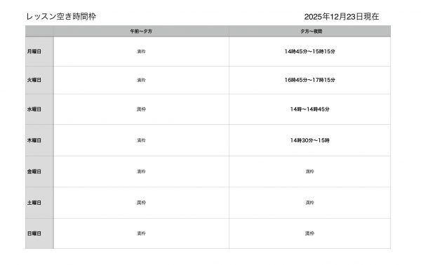 もちろん、通われる事をある程度お考えの方や、それぞれのご都合もあると思いますので、1回の体験レッスンも引き続き受付けております。